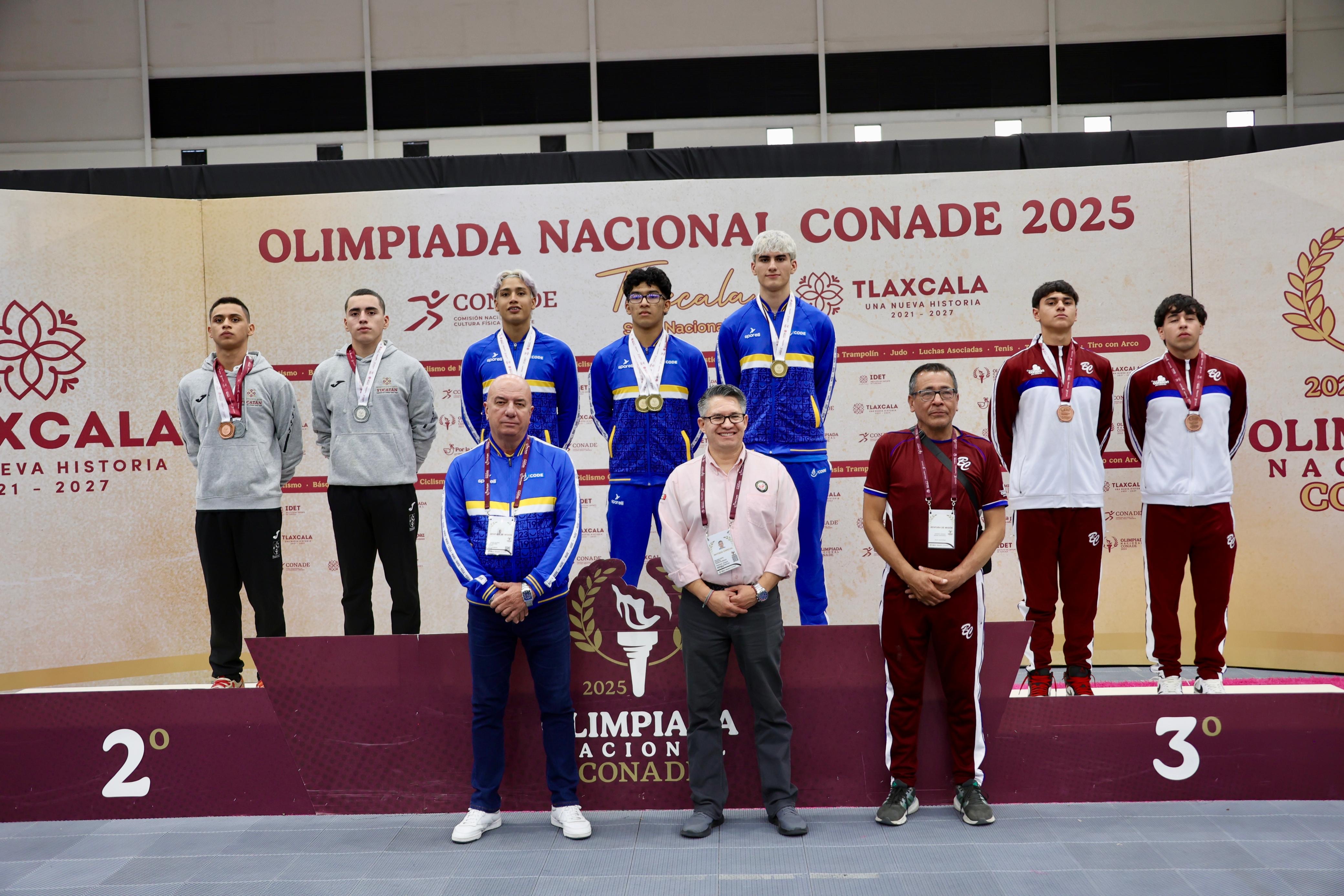 APIZACO.- La delegación de Gimnasia de Trampolín de Baja California continúa destacando en la Olimpiada Nacional 2025, al sumar este domingo su segunda medalla de bronce durante el tercer día de actividades. La presea fue obtenida por la dupla integrada por Cristopher Padilla y Yahel García en la modalidad por Equipos categoría 17-21 años.