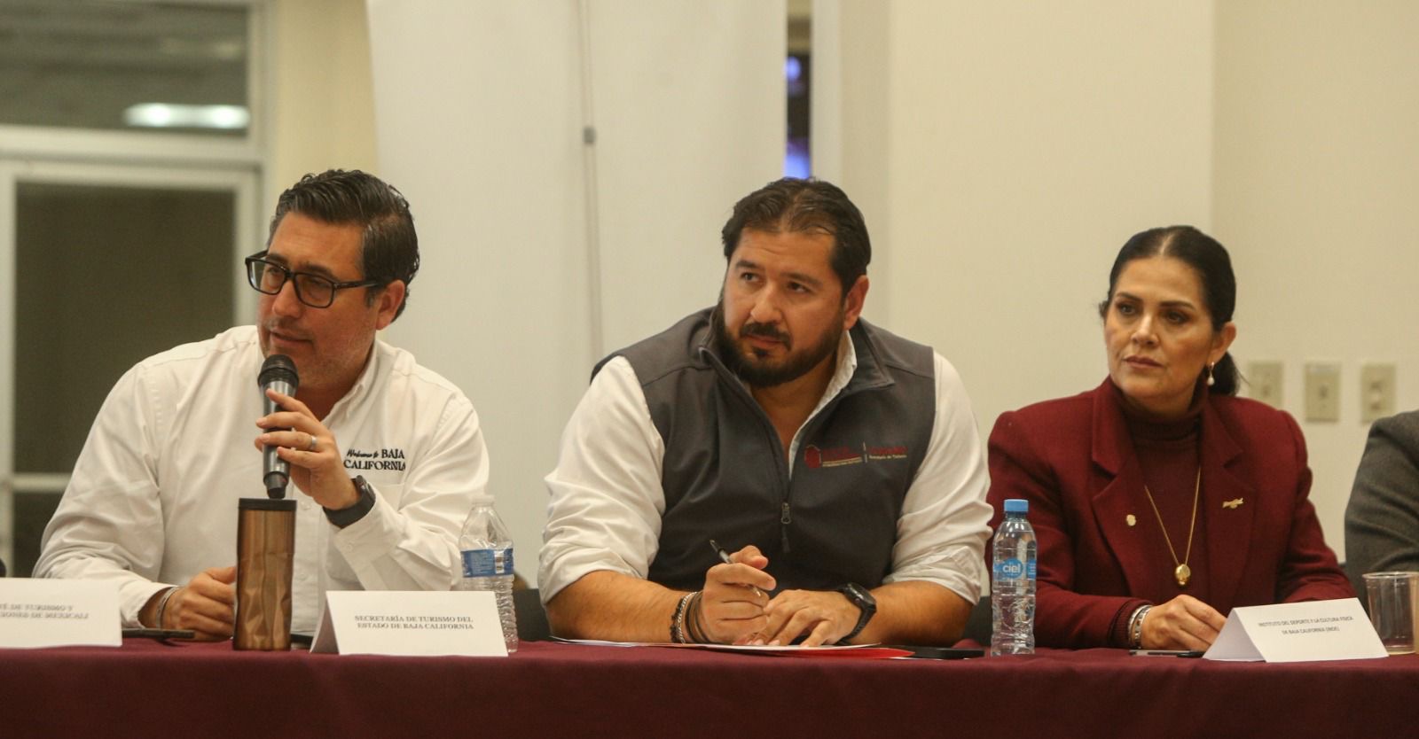 Ante las instrucciones de la gobernadora Marina del Pilar Avila Olmeda, el Secretario de Turismo de Baja California, Miguel Aguiñiga Rodríguez, encabezó la tercera mesa de trabajo, esta vez en la Sala de Exposición del INDEBC, en la Ciudad Deportiva.