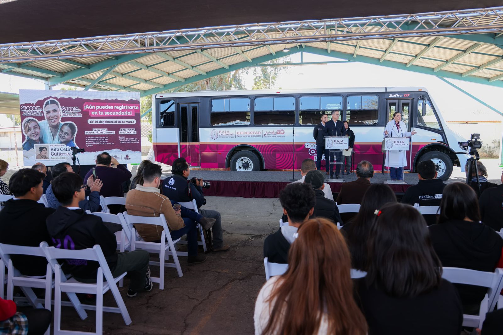 Por su parte, el titular del Instituto de la Juventud de Baja California (INJUVE), José Francisco Molina, resaltó que la inversión actual en educación supera la de las dos administraciones estatales anteriores, las cuales en conjunto destinaron 52 millones de pesos a este rubro.