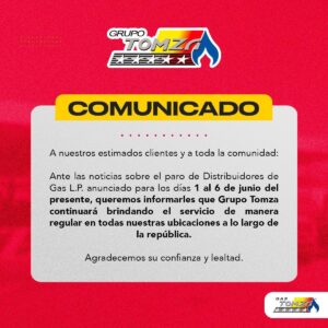 TIJUANA.- Al reafirmar su compromiso social y con la comunidad, “Gas Silza” que forma parte del grupo Tomza , anuncia que no participa en el paro nacional convocado del primero al seis de junio.