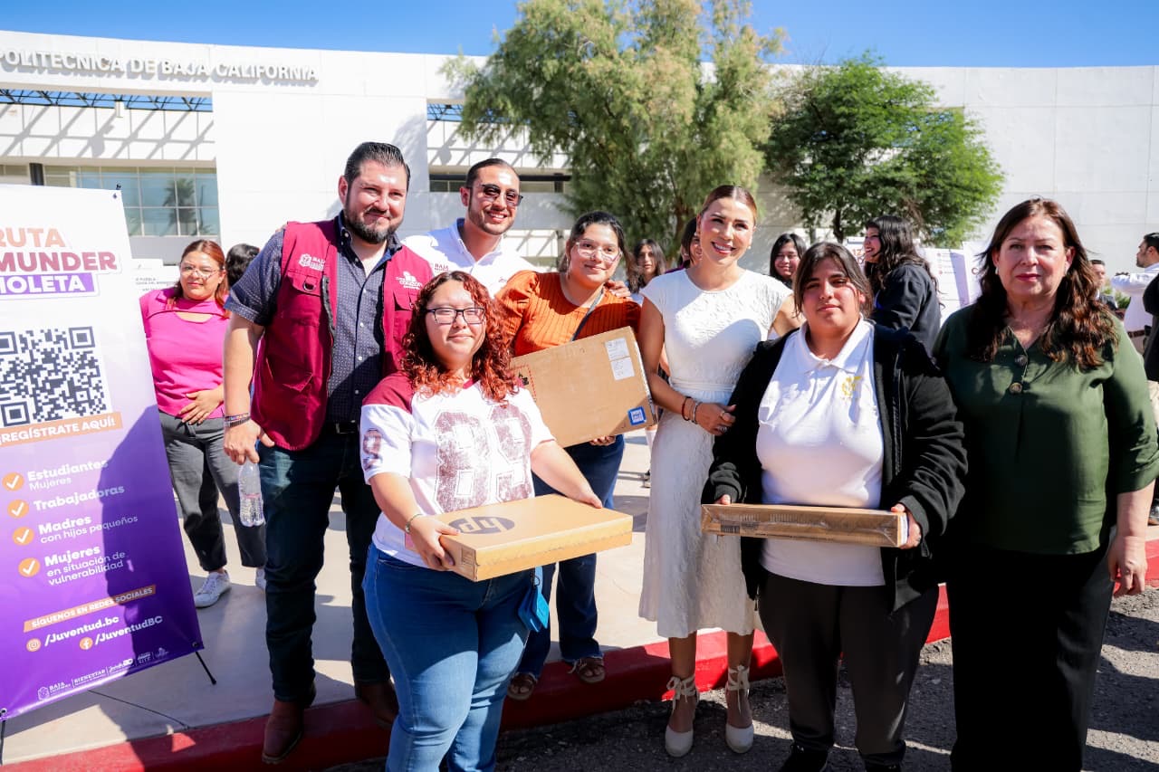 La rectora de la UPBC, Marcela Barreras Hernández, destacó que la universidad cuenta con una matrícula de 1 mil 911 estudiantes, de los cuales casi la mitad son mujeres. Entre ellas se encuentran 392 beneficiarias de la Tarjeta Violeta.