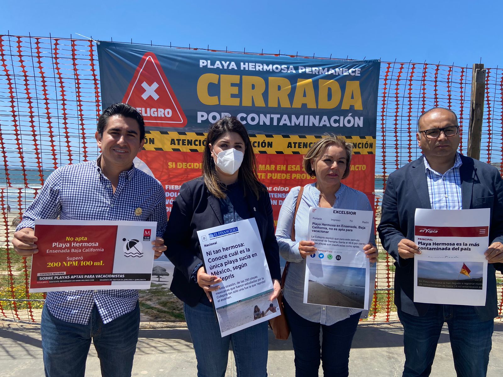 ENSENADA.- El desastre ecológico y de salubridad que se está cometiendo en “Playa Hermosa, fue denunciado la mañana de hoy por el Partido Acción Nacional en Ensenada, que encabeza el Presidente Alvaro Ortiz Gutierrez, acompañado de la Regidora Brenda Valenzuela Tortoledo, el diputado local Diego Echeverria Ibarra y la bióloga Thelma Castañeda Custodio, ex secretaria del medio ambiente en el estado.