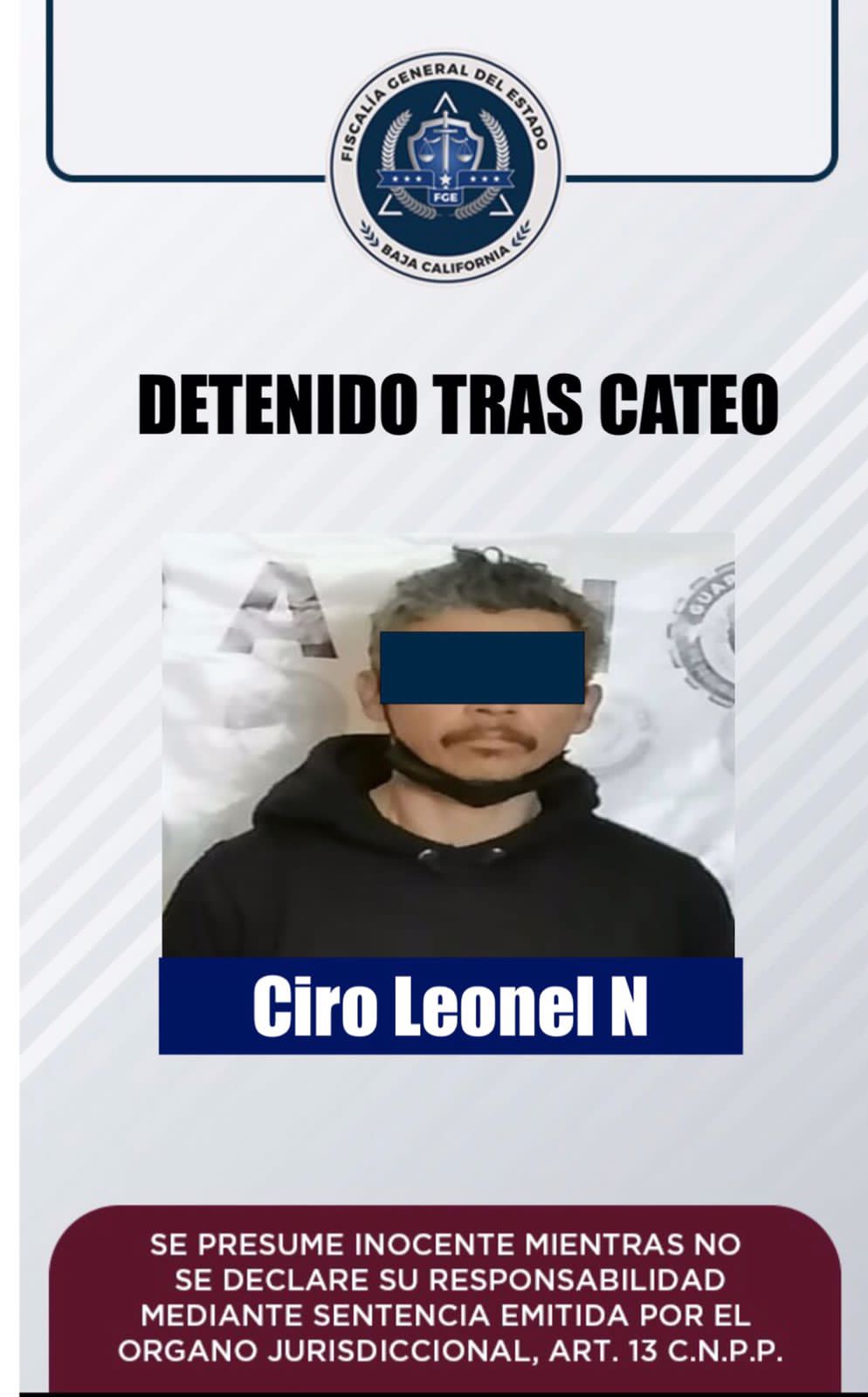 Una vez obtenido el mandamiento judicial Agentes Estatales de Investigación, en coordinación con la Secretaría de la Defensa Nacional (SEDENA), y procedieron a inspeccionar el domicilio en donde aseguraron a Ciro Leonel “N”.