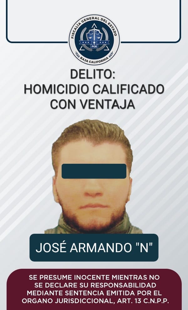 TIJUANA.- La Fiscalía General del Estado logró la vinculación a proceso de José Armando “N”, alias “El Marcelo”, por el delito de homicidio calificado con Ventaja.