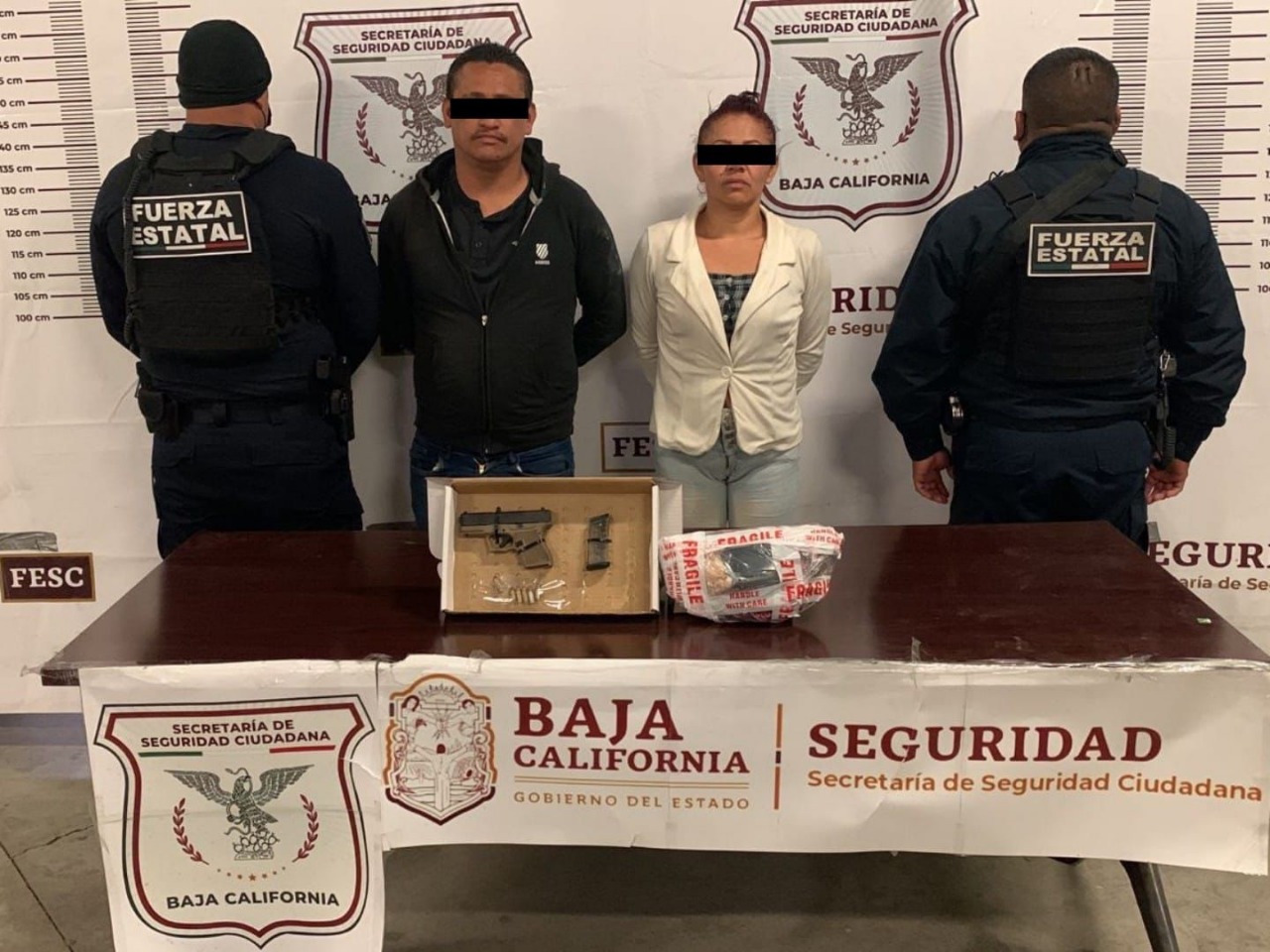 Al ser abordados por los oficiales de la FESC el hombre se identificó como Valentín “N” de 38 años originario de Tijuana y la mujer como Ma. Trinidad “N” de 37 años originaria de Aguililla, Michoacán, a quienes se les solicitó una inspección a su vehículo.