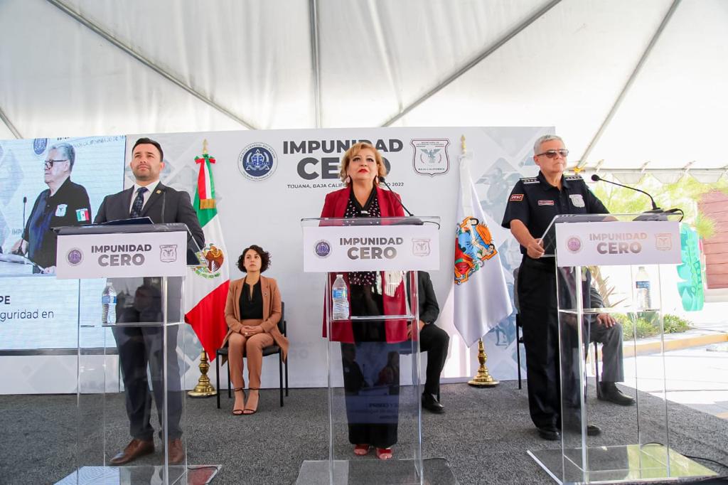 TIJUANA.- Para dar cuenta de los avances, programas y operativos de las instituciones de Seguridad y Justicia de Baja California, los titulares de la Secretaría de Seguridad Ciudadana, la Fiscalía General del Estado (FGE) y el Sistema Estatal Penitenciario encabezaron en Tijuana la cuarta edición de Impunidad Cero.