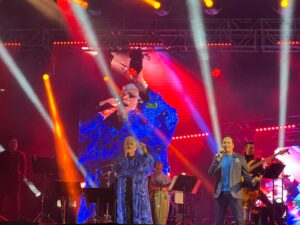 En el corazón de la avenida Revolución, icono de la cultura transfronteriza, la cantante llevó a los cientos de asistentes a un viaje nocturno, con música norteña, banda y regional mexicana.