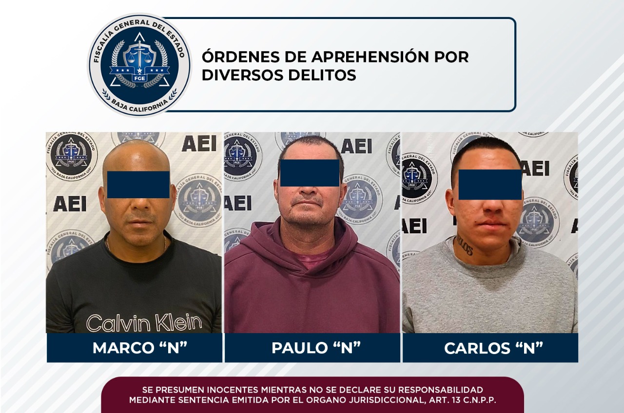 Las órdenes de aprehensión antes citadas fueron cumplimentadas por el Grupo de Aprehensiones Tijuana, una vez que jueces de control del Poder Judicial del Estado de Baja California otorgaron dichos mandamientos a petición del agente del Ministerio Público.