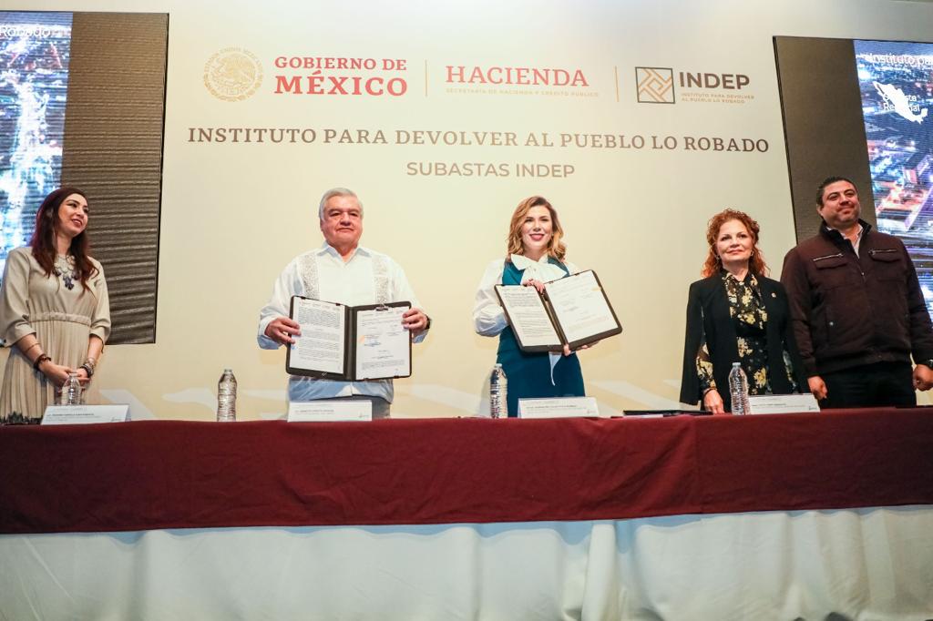MEXICALI.- Como parte de una política pública estratégica para aprovechar al máximo los recursos públicos en beneficio de las y los ciudadanos, la Gobernadora de Baja California, Marina del Pilar Avila Olmeda, firmó un convenio con el Instituto Para Devolver al Pueblo lo Robado (INDEP) para que sea la institución federal fundada por el Presidente de México, Andrés Manuel López Obrador, la que venda bienes estatales con el mayor rendimiento para las finanzas estatales.
