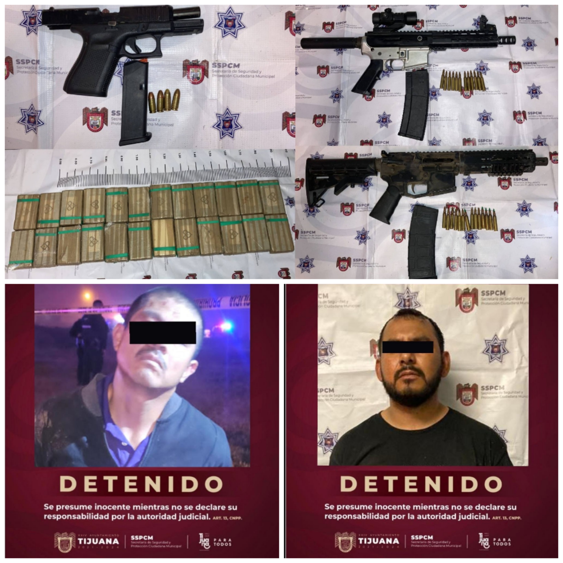 TIJUANA.- Dos detenidos, armas largas y 27 kilos de droga fue el resultado de una detención realizada por agentes de la Policía Municipal de Tijuana, que tuvo lugar tras una persecución que inició en el distrito Santa Fe y culminó en el municipio de Playas de Rosarito.