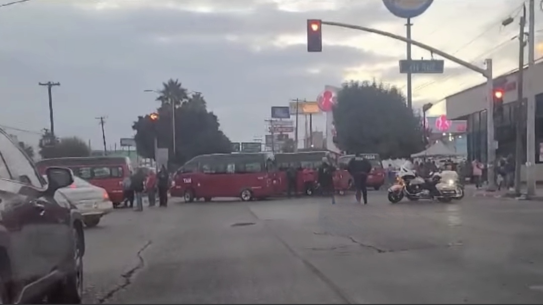 TIJUANA.- Decenas de integrantes del gramio de taxistas Rojo y Negro, bloquean desde esta mañana el crucero conocido como la 5 y 10, en La Mesa.