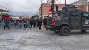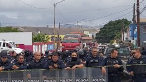 TIJUANA.- Choferes de la línea de taxis Rojo con Negro embistieron con sus unidades y agredieron a golpes a policías preventivos cuando estos intentaron desocupar el bulevar bloqueado desde esta mañana.