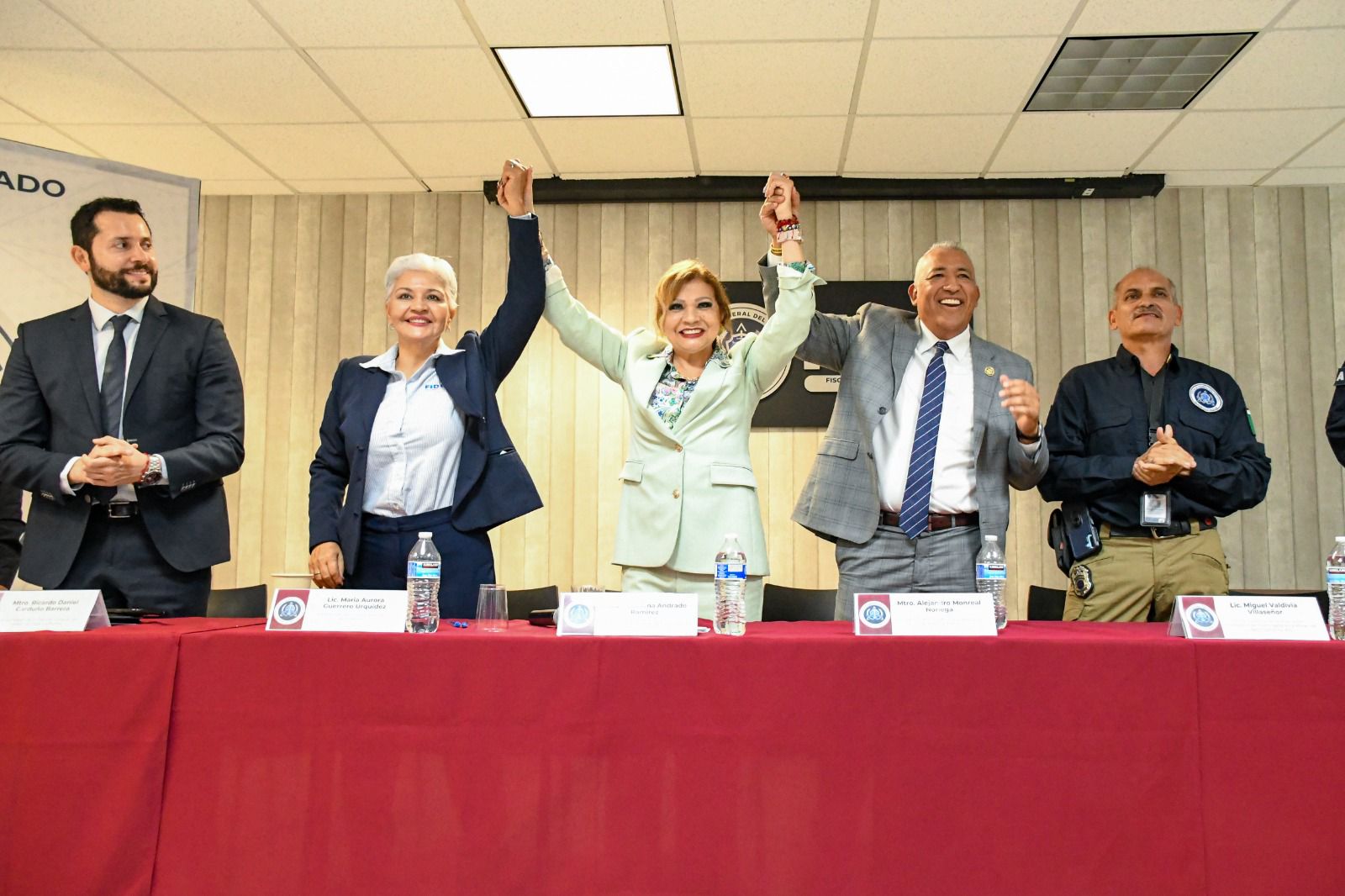 TIJUANA.- La Fiscal General en Baja California, María Elena Andrade Ramírez firmó un fideicomiso para la jubilación de los elementos de la Agencia Estatal de Investigación (AEI) de la FGE.