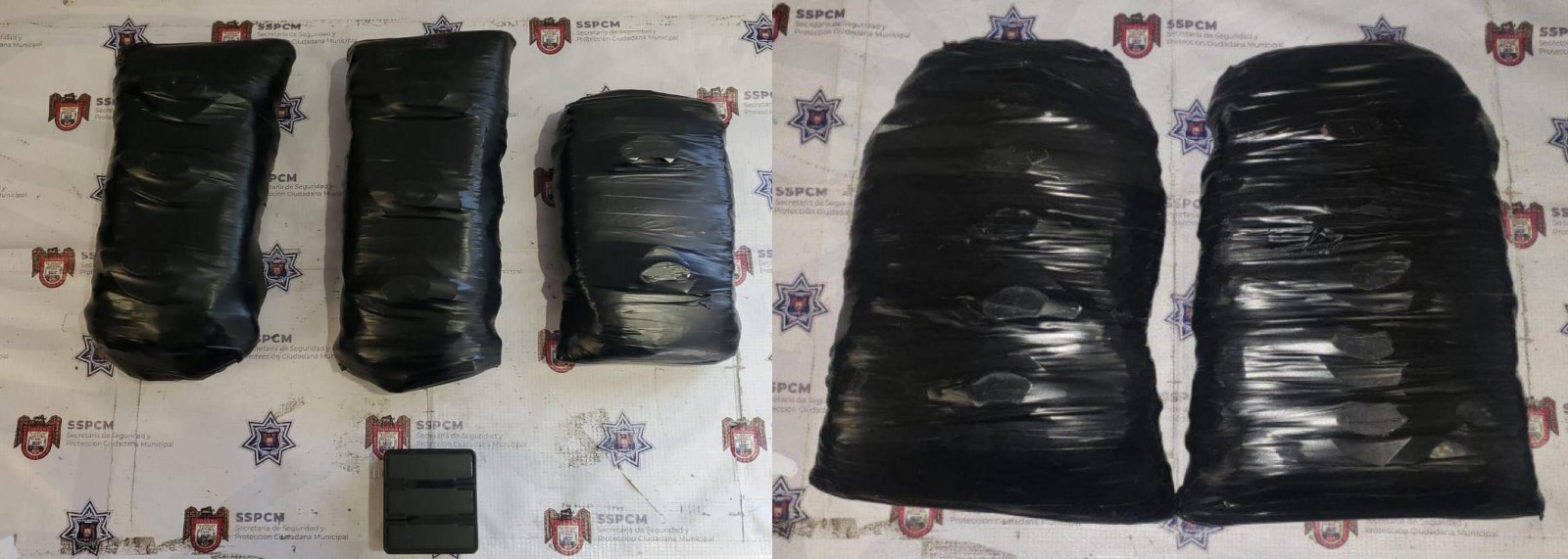 Por otro lado, en el fraccionamiento Los Olivos una mujer reportó que al dirigirse a su trabajo en los Estados Unidos, frenó de emergencia y notó un sonido extraño en su vehículo, por lo que al descender para revisar, observó que se habían desprendido tres paquetes y un aparato de plástico y de inmediato lo reportó a través del 9-1-1.