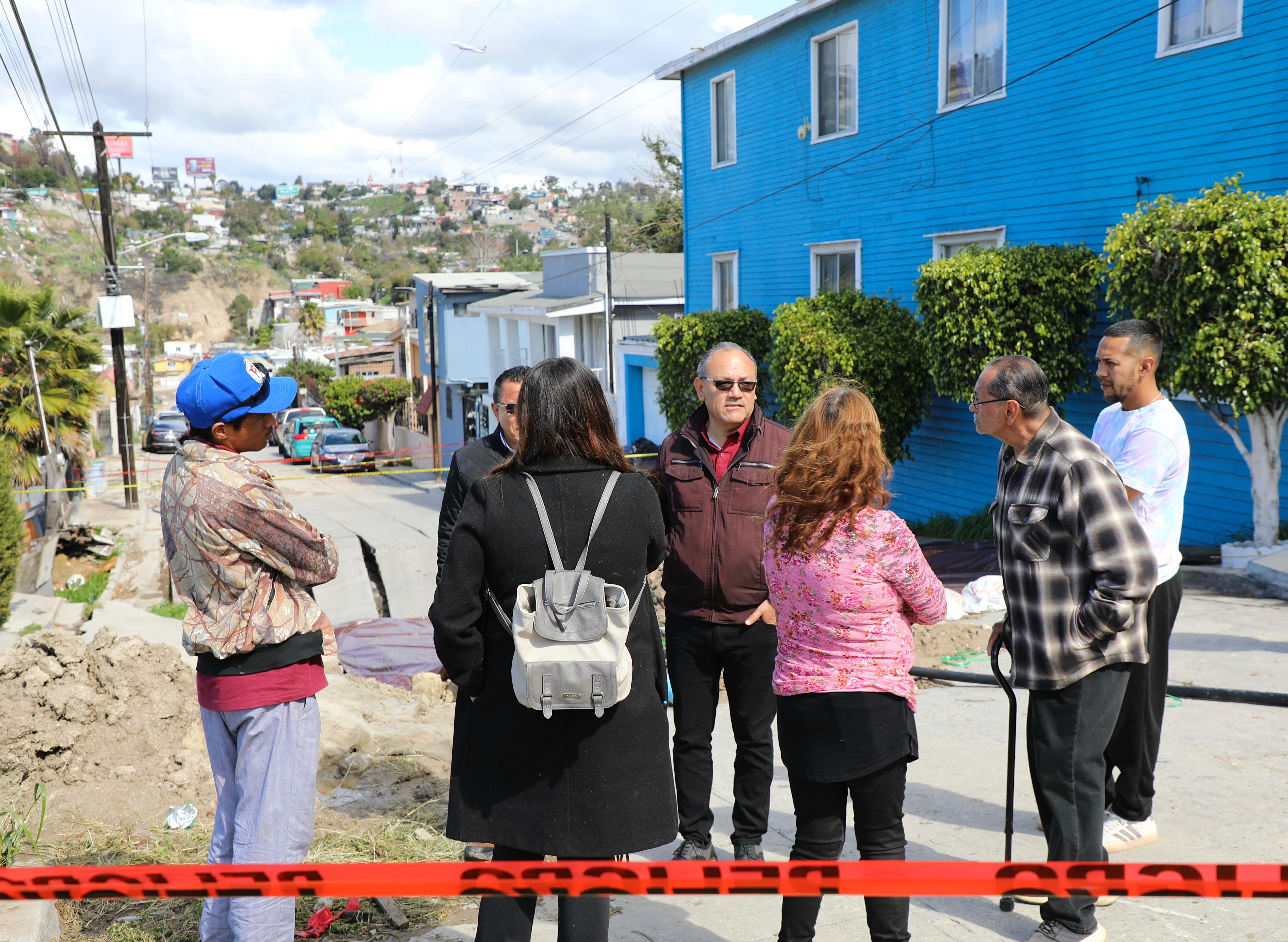 TIJUANA.- El director de la Comisión Estatal de Servicios Públicos de Tijuana (CESPT) Jesús García Castro, realizó esta mañana un recorrido de reconocimiento en la calle Tomás Estévez, de la colonia Del Río parte baja, en donde se registró el 13 de febrero del año en curso, un deslizamiento de tierra que provocó hundimiento, afectando la red hidráulica del organismo y viviendas.