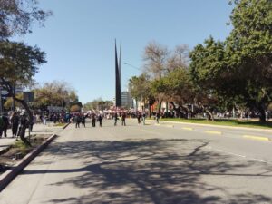La marcha avanza desde la glorieta Las Tijeras hasta el monumento a Cuauhtémoc y finalmente hasta llegar a la Fiscalía General del Estado.
