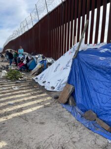 Desde al menos mayo de 2023, EE. UU. Aduanas y Protección Fronteriza (CBP) ha obligado a miles de migrantes a esperar el procesamiento de asilo u otro tipo de ayuda en campamentos al aire libre peligrosos y escuálidos a lo largo de la frontera entre California y México (que el CBP denomina eufemísticamente «sitios de reunión»), sin acceso confiable a alimentos, agua, refugio, calor, saneamiento o atención médica.