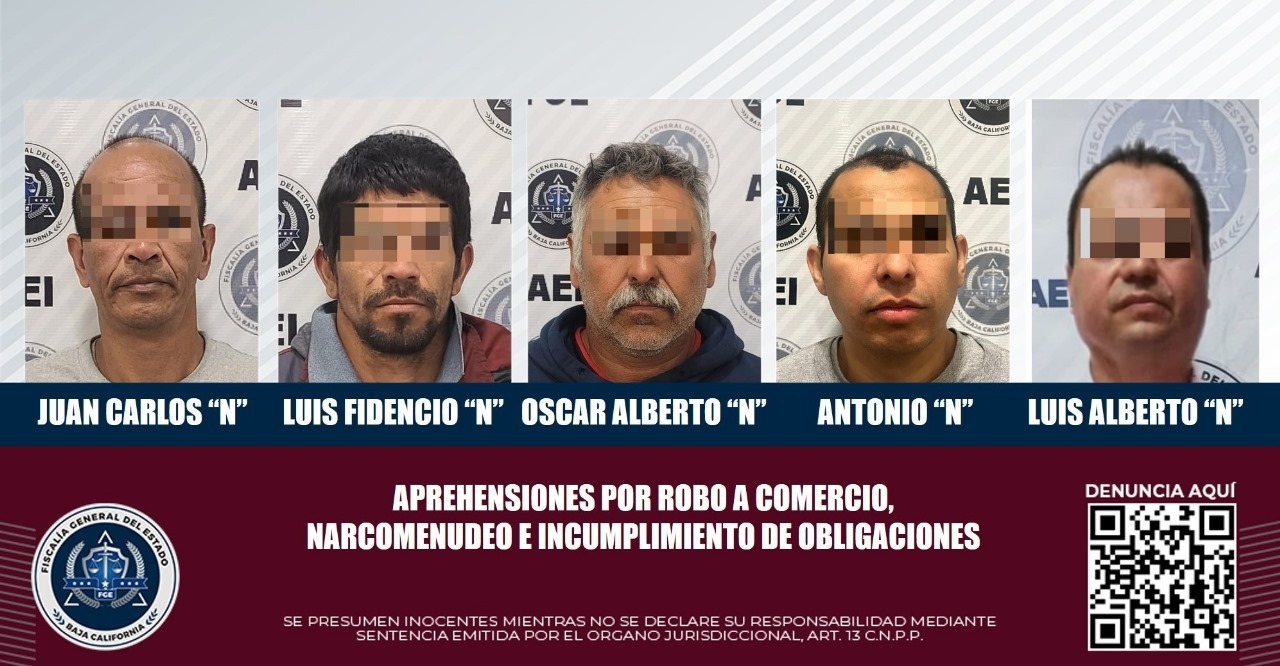 TIJUANA.- Agentes de la Fiscalía General del Estado cumplimentaron cinco órdenes de aprehensión, en contra de igual número de imputados que eran requeridos por jueces de control en casos y delitos diversos, uno de ellos era buscado por autoridades del estado de México y se encontraba en Tijuana.