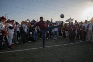 En una asamblea con vecinos de Villa Fontana en la Unidad Deportiva La Presa, el candidato de MORENA subrayó que se recuperarán y crearán nuevos espacios públicos y recreativos, para que niñas, niños y jóvenes puedan practicar las distintas disciplinas y potenciar sus habilidades.