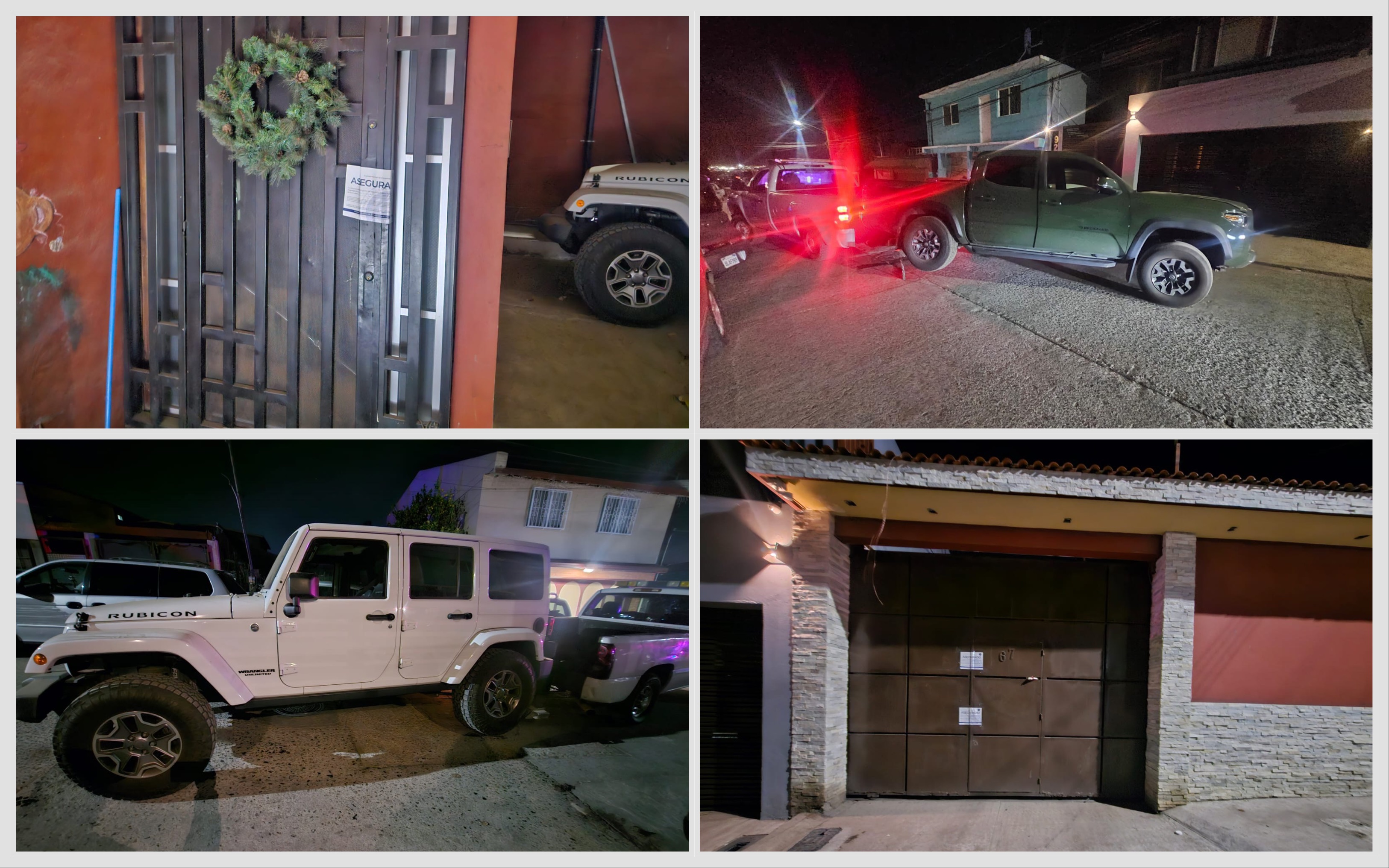 A su vez, el domicilio donde fueron localizados los vehículos, también resultó asegurado para su investigación; estas acciones se llevaron a cabo con la participación de un Fiscal, un auxiliar, 13 elementos de la Agencia Estatal de Investigación y dos oficiales de la Policía Municipal.
