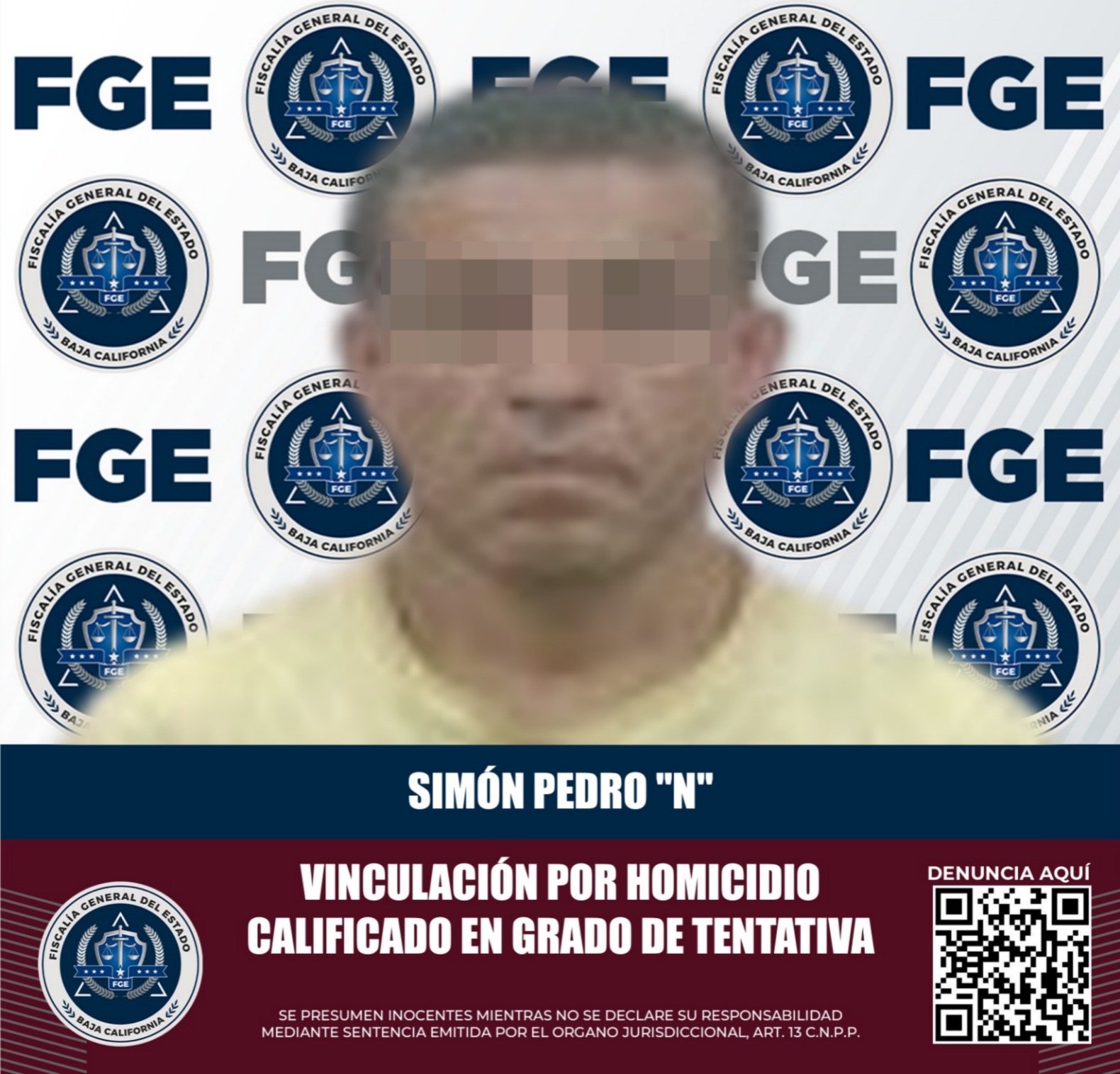 TIJUANA.- La Fiscalía General del Estado (FGE), a través de la Fiscalía Especializada en Delitos Contra la Vida, informa sobre la vinculación a proceso de Simón Pedro “N” por su probable responsabilidad en el delito de homicidio calificado en grado de tentativa, reforzando el compromiso de esta institución con la justicia y la seguridad de la ciudadanía.