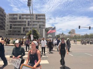 SAN DIEGO.- Miles de personas marcharon este sábado por las principales calles del centro de San Diego para manifestarse contra las redadas del Servicio de Inmigración y Control de Aduanas (ICE) y las políticas antimigrantes del expresidente Donald Trump, quien busca regresar a la presidencia de Estados Unidos en las próximas elecciones.