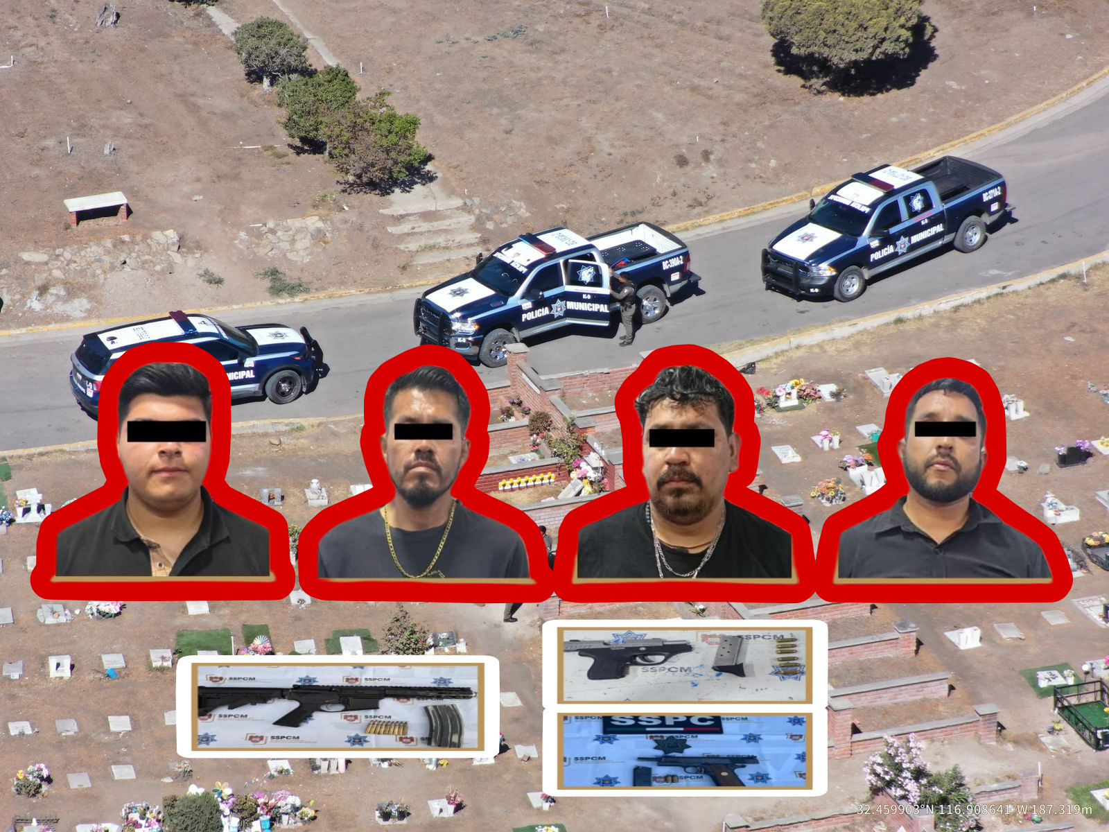TIJUANA.- Cuatro personas fueron detenidas este miércoles por agentes de la Policía Municipal, en coordinación con autoridades federales y estatales, luego de realizar disparos al aire durante un sepelio en el panteón Monte de los Olivos.