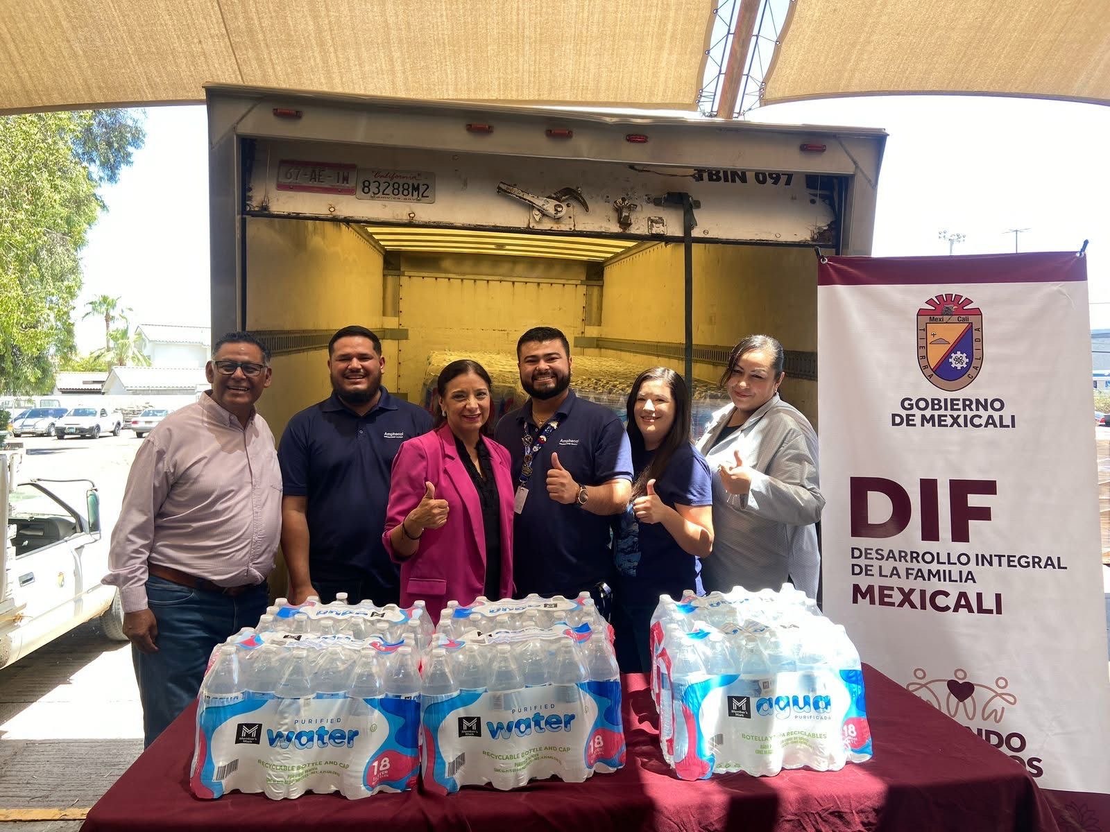Mexicali.- El Gobierno de Mexicali, a través de DIF Municipal, recibió un donativo de 10,000 botellas de agua por parte de la empresa Amphenol. Este apoyo es fundamental para el programa “S.O.S Hidrátate”, una iniciativa que busca prevenir problemas de salud en la población vulnerable debido a las altas temperaturas.