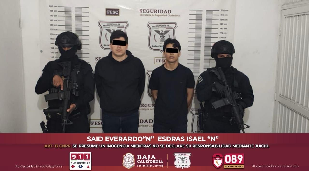 Los detenidos fueron identificados como Esdras Isael “N”, de 25 años, y Said Everardo “N”, de 18, ambos originarios del estado de Sinaloa. Tras leerles sus derechos, fueron puestos a disposición de la autoridad correspondiente.