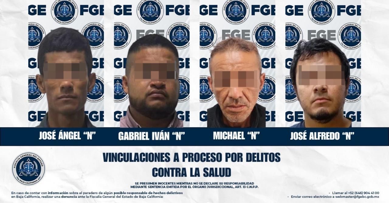 TIJUANA.- Cuatro sujetos fueron vinculados a proceso por delitos contra la salud, informó la Fiscalía General del Estado.
