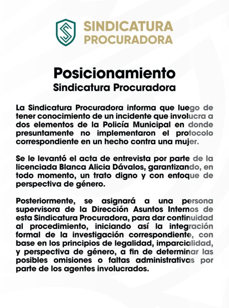 En su pronunciamiento, la sindicatura enfatizó que no tolerará conductas que vulneren la dignidad de las personas, especialmente de las mujeres y grupos vulnerables.