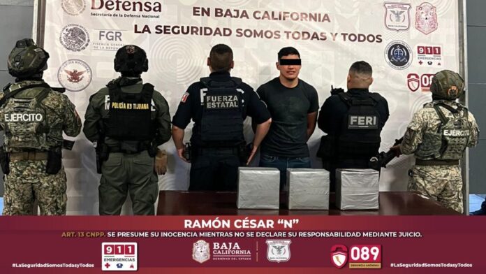 Por tal razón, Ramón César “N”, de 25 años y originario de Chihuahua, fue detenido en el lugar; posteriormente, con apoyo de la Secretaría de la Defensa Nacional (DEFENSA) y de la Policía Municipal de Tijuana, fue puesto a disposición de la Fiscalía General de la República (FGR), autoridad encargada de investigar la procedencia y el destino del narcótico incautado.