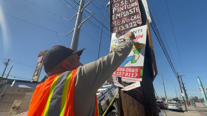 Mexicali, B.C.- Con el propósito de mejorar la imagen urbana y mantener espacios públicos más limpios y ordenados, el Gobierno de Mexicali inició un operativo para la remoción de letreros colocados de manera irregular en la vía pública.