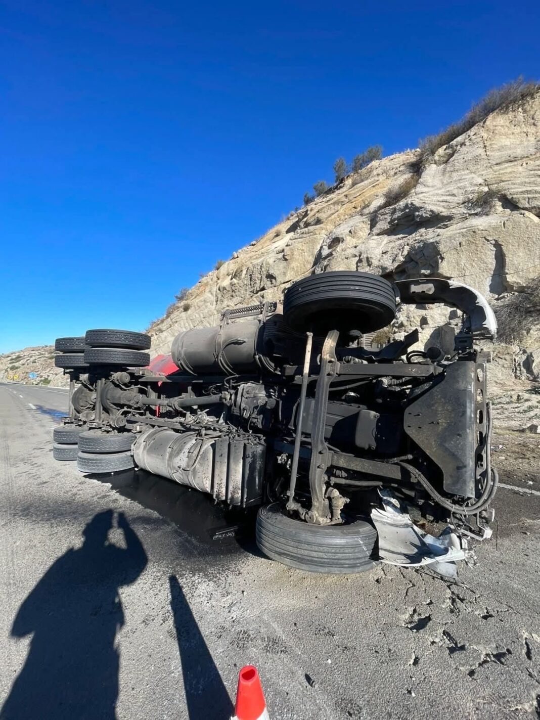 TIJUANA.- La mañana de este jueves, se registró una volcadura en la autopista descendente del Hongo a Tecate, a la altura del kilómetro 107.