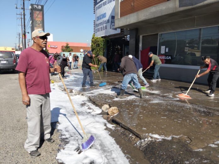Posteriormente, las obras continuaron sobre el bulevar Díaz Ordaz, de la Delegación La Mesa, donde se intervinieron cerca de mil 700 metros cuadrados, con el barrido y lavado de la banqueta, contando con el valioso apoyo de comerciantes de la zona quienes se sumaron a los esfuerzos de limpieza.