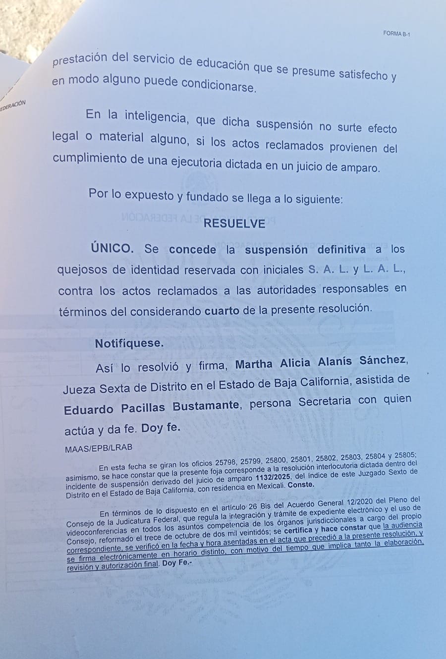 El Juzgado Sexto de Distrito del Poder Judicial de la Federación otorgó la suspensión definitiva para proteger el derecho a la educación de dos niños neurodivergentes de nueve y siete años de edad, de acuerdo al incidente de suspensión 1132/2025 de noviembre de este año.