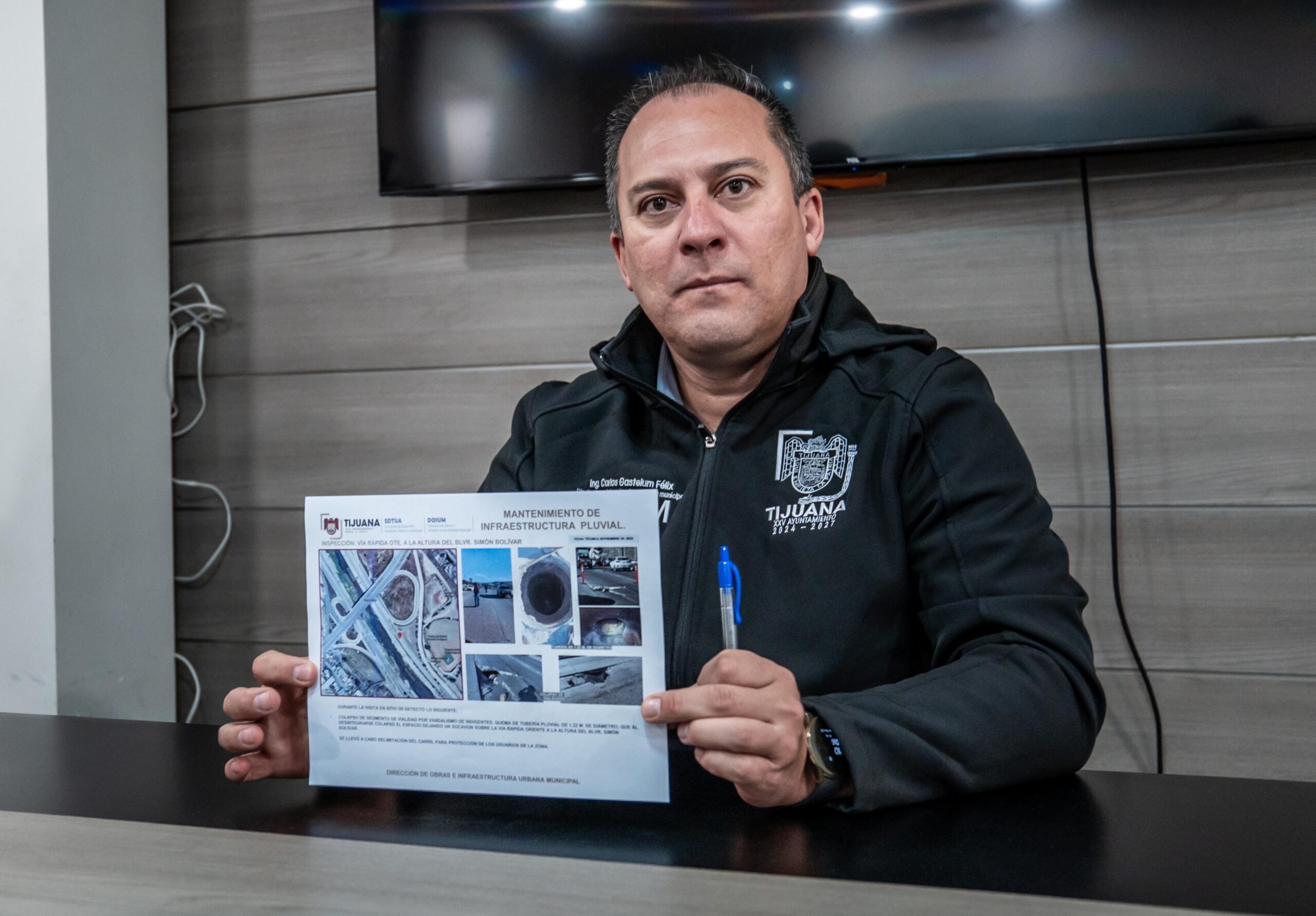 El funcionario destacó que los trabajos comenzaron de manera inmediata, realizando una primera derivación del tráfico. Este martes ya se habilita un desvío adicional por la terracería del nodo Simón Bolívar para abrir un carril más, con la finalidad de reducir las afectaciones viales, ya que el pluvial dañado corre por el carril central paralelo a la vialidad y desemboca en el río Tijuana.