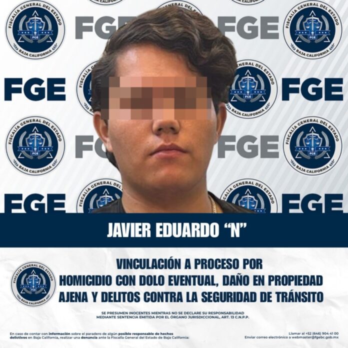 TIJUANA.- La Fiscalía Regional de Tijuana informa que, a través de las labores de la Unidad de Investigación con Detenido, Zona Tijuana, se logró obtener la vinculación a proceso y la imposición de la medida cautelar de prisión preventiva oficiosa en contra de Javier Eduardo “N”, por su probable responsabilidad en los delitos de homicidio cometido con dolo eventual, daño en propiedad ajena y delitos contra la seguridad de hechos de tránsito de vehículos.