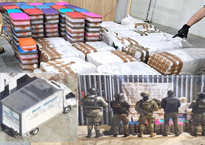 TIJUANA, BC.– En un contundente golpe contra el narcotráfico, autoridades federales aseguraron 720 kilogramos de metanfetamina, así como 28 cartuchos útiles, un vehículo y un inmueble en la ciudad de Tijuana.
