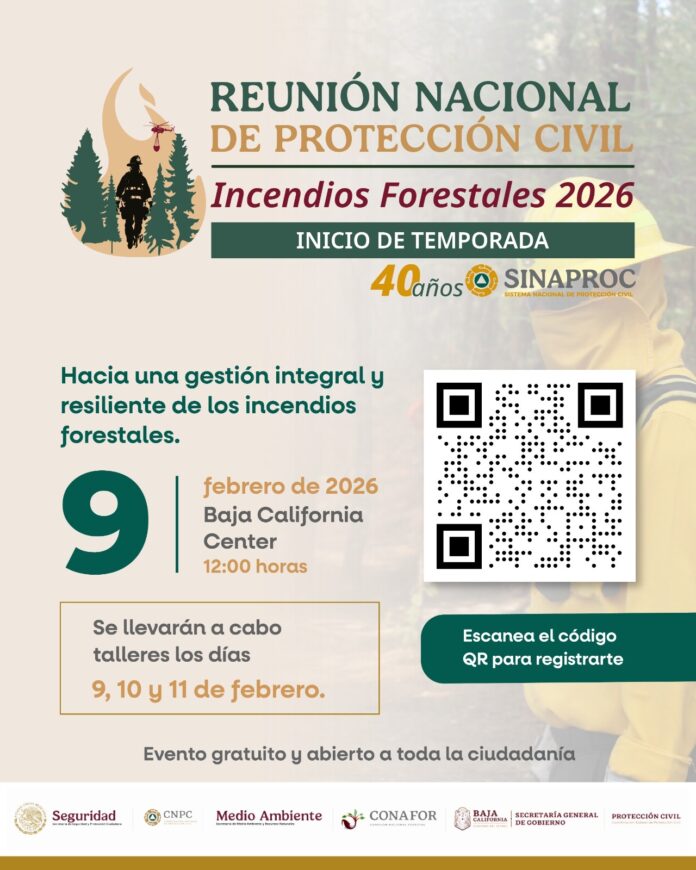 TIJUANA.- Baja California será sede de la Reunión Nacional de Protección Civil del 9 al 11 de febrero en el Centro de Convenciones Baja California Center, en el marco del 40 aniversario de la CNPC.