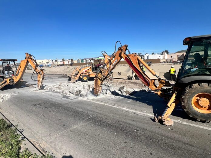 Tijuana.- Con motivo de las obras de reparación del socavón que se realizan en la Vía Rápida Poniente, a la altura del Centro Industrial Los Pinos, el gobierno del presidente municipal, Ismael Burgueño Ruiz, a través de la Secretaría de Movilidad Urbana Sustentable, Inspección y Seguridad Vial (SEMOVIS), hace un llamado a la ciudadanía para tomar precauciones y utilizar rutas alternas que permitan mantener un mejor flujo vehicular en la zona.