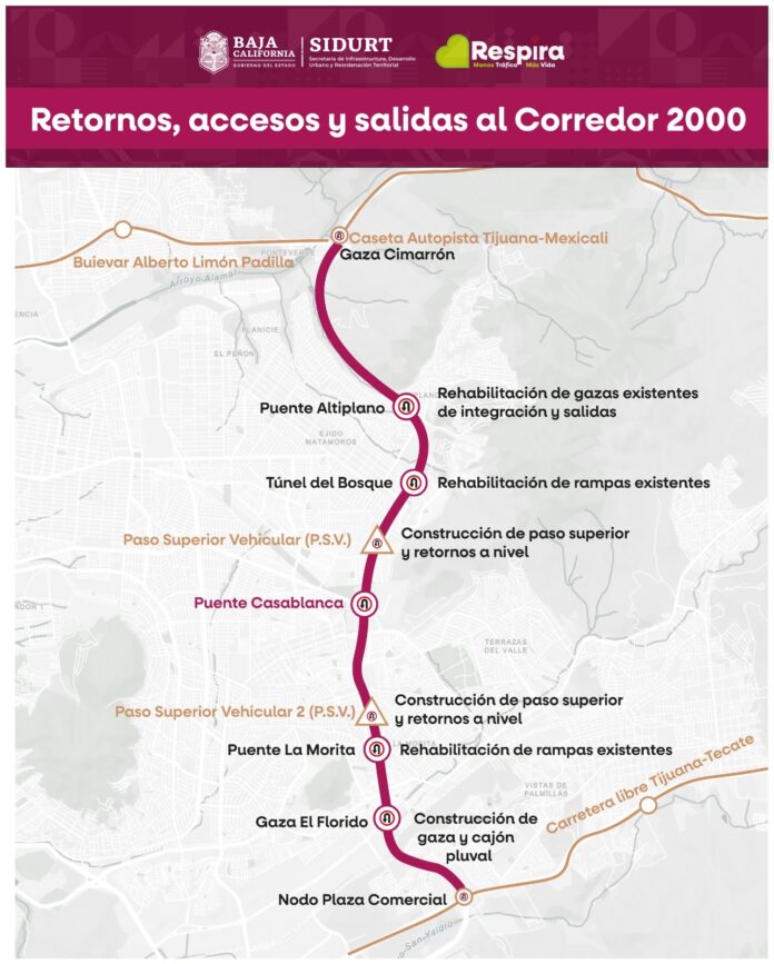 TIJUANA.- La Secretaría de Infraestructura, Desarrollo Urbano y Reordenación Territorial (SIDURT) avanza en la modernización del Corredor Tijuana-Rosarito 2000, con el objetivo de reducir los accidentes y mejorar la seguridad de los conductores.