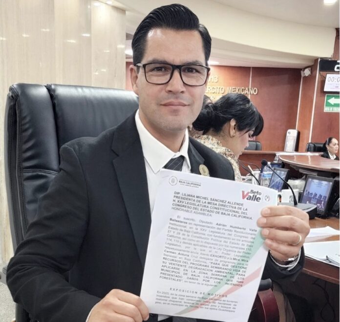 Mexicali.- El Diputado Adrián Humberto Valle Ballesteros exhortó a la Delegada de Programas para el Bienestar en Baja California, Carmen Antuna Cruz a que gestione recursos del programa sembrando vida de su vertiente degradación ambiental, para aplicarse en la zona serrana de los municipios del Estado dañada por los incendios forestales.