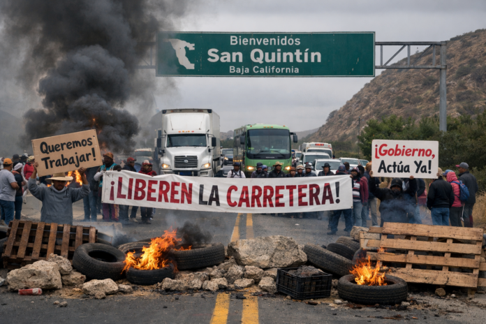 SAN QUINTÍN, BC.– El empresario agrícola de San Quintín, Carlos Hafen López, solicitó la intervención inmediata del gobierno federal ante los bloqueos que desde hace una semana mantienen cerrado el único acceso carretero de la península, al advertir que la situación podría escalar a un conflicto social similar al registrado en 2015.