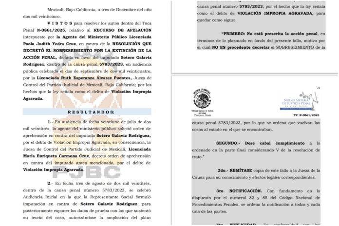 La revocación la ordenaron el 3 de diciembre de 2025 los magistrados María Dolores Moreno, Leonardo del Garza y Salvador Avelar, correspondiente a la toca penal 0861-2025