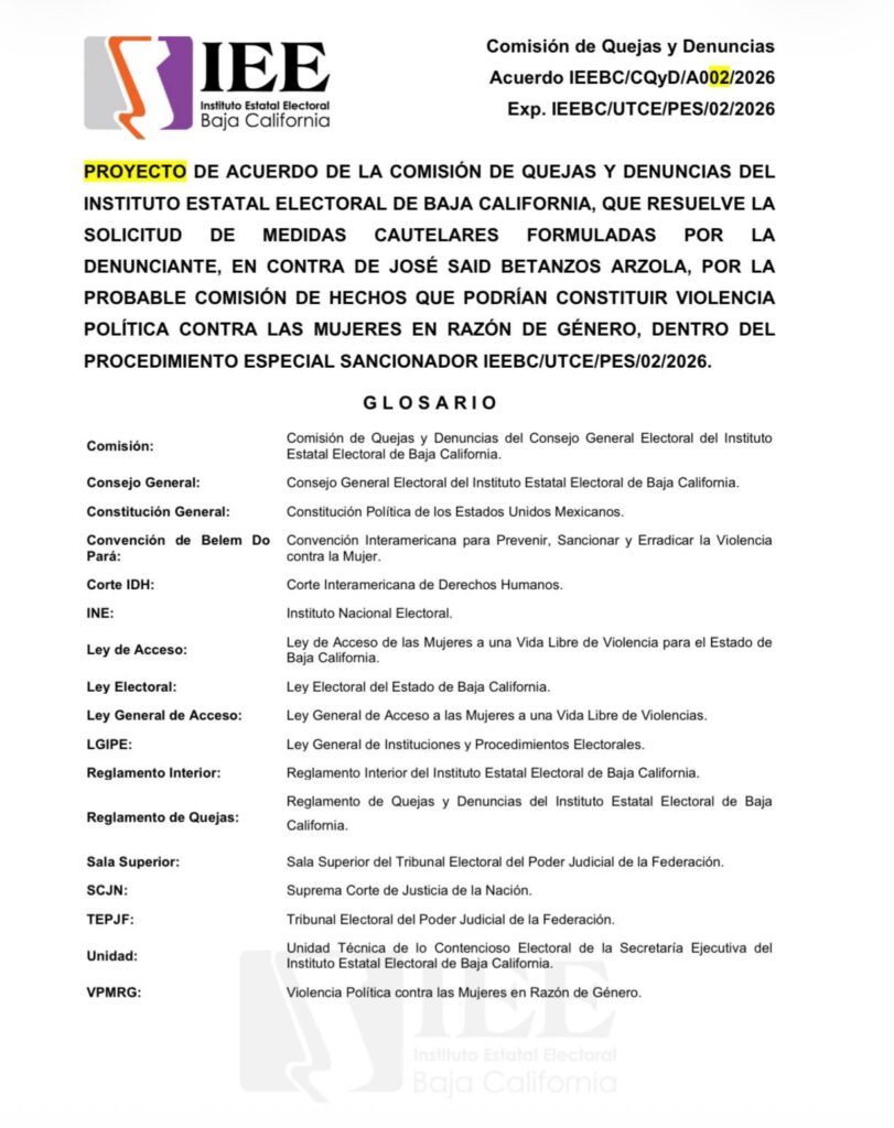 En apenas dos días se tomó un acuerdo para que sesione la Comisión de Quejas y Denuncias del Instituto Estatal Electoral de Baja California (IEEBC), con el fin de que representantes de partidos fijen postura sobre el caso.