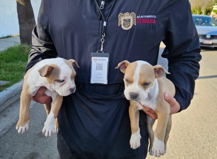TIJUANA.- La Dirección de Inspección y Verificación, rescató a cuatro caninos de aproximadamente dos meses de edad, presuntamente de raza pitbull, que eran comercializados de manera irregular en la vía pública.
