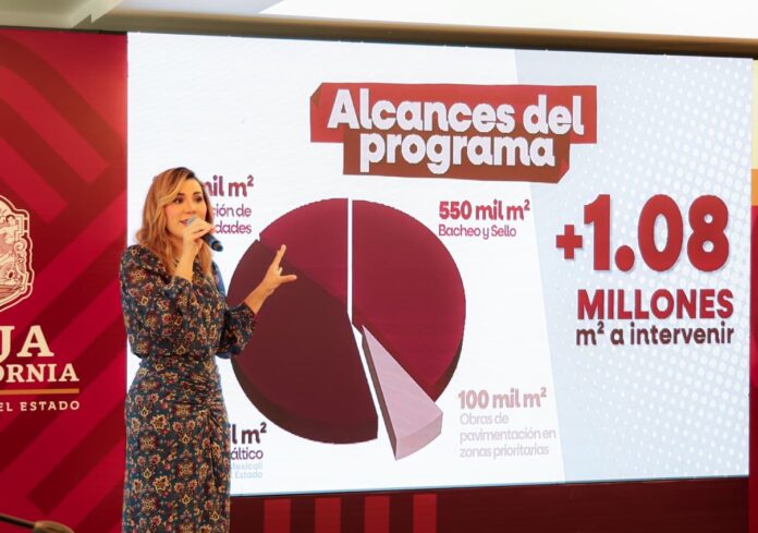 La gobernadora Marina del Pilar Avila Olmeda anunció durante su Conferencia Mañanera que esta primera etapa contempla la intervención de más de 100 kilómetros de calles, equivalente a la distancia entre Mexicali y El Hongo, beneficiando de manera directa a más de 250 mil personas.