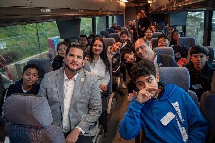 Tijuana, BC.- El presidente municipal, Ismael Burgueño Ruiz, acompañó este jueves a alumnas y alumnos de la Escuela Secundaria Municipal No. 2 ‘Xicoténcatl Leyva Alemán’ en su traslado al Museo de Arte de San Diego, como parte del programa ‘Arte Traspasando Fronteras’, orientado a ampliar los horizontes académicos y culturales de las y los estudiantes tijuanenses.