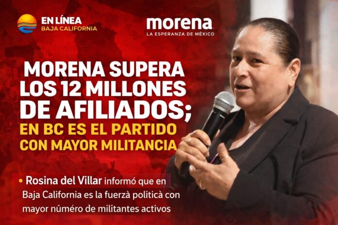 MEXICALI, BC.÷ El Partido Morena superó los 12 millones de personas afiliadas a nivel nacional, informó la dirigencia del partido, al destacar que esta cifra refleja —según su posicionamiento— el respaldo ciudadano al proyecto de la llamada Cuarta Transformación.